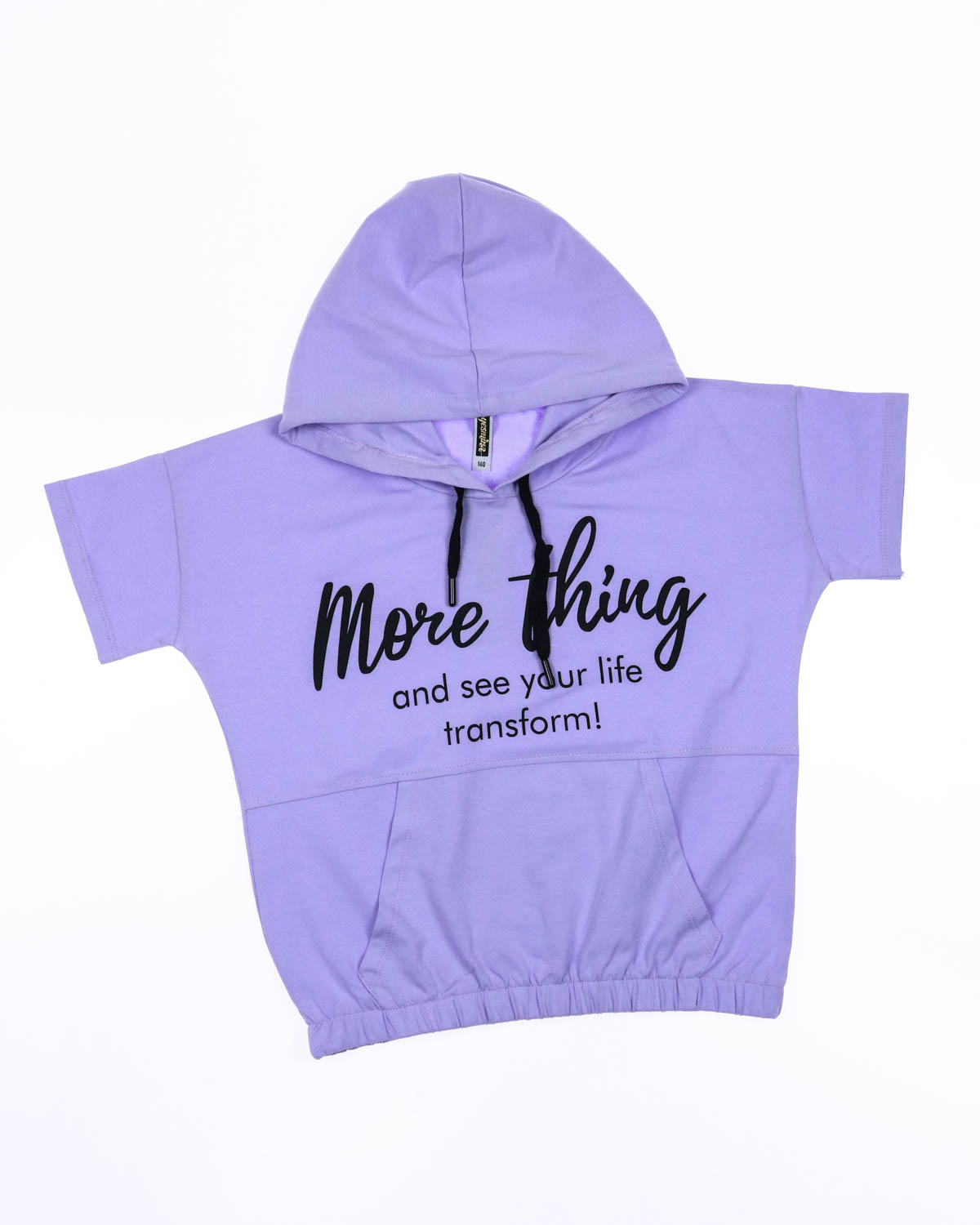 Футболка прямого кроя с капюшоном на резинке. На животе футболки  карман по типу кенгуру.