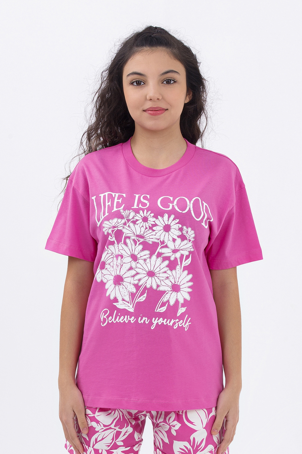 Футболка DMB для девочки оптом прямого кроя с округлой горловиной, выполнена из 100% хлопка.