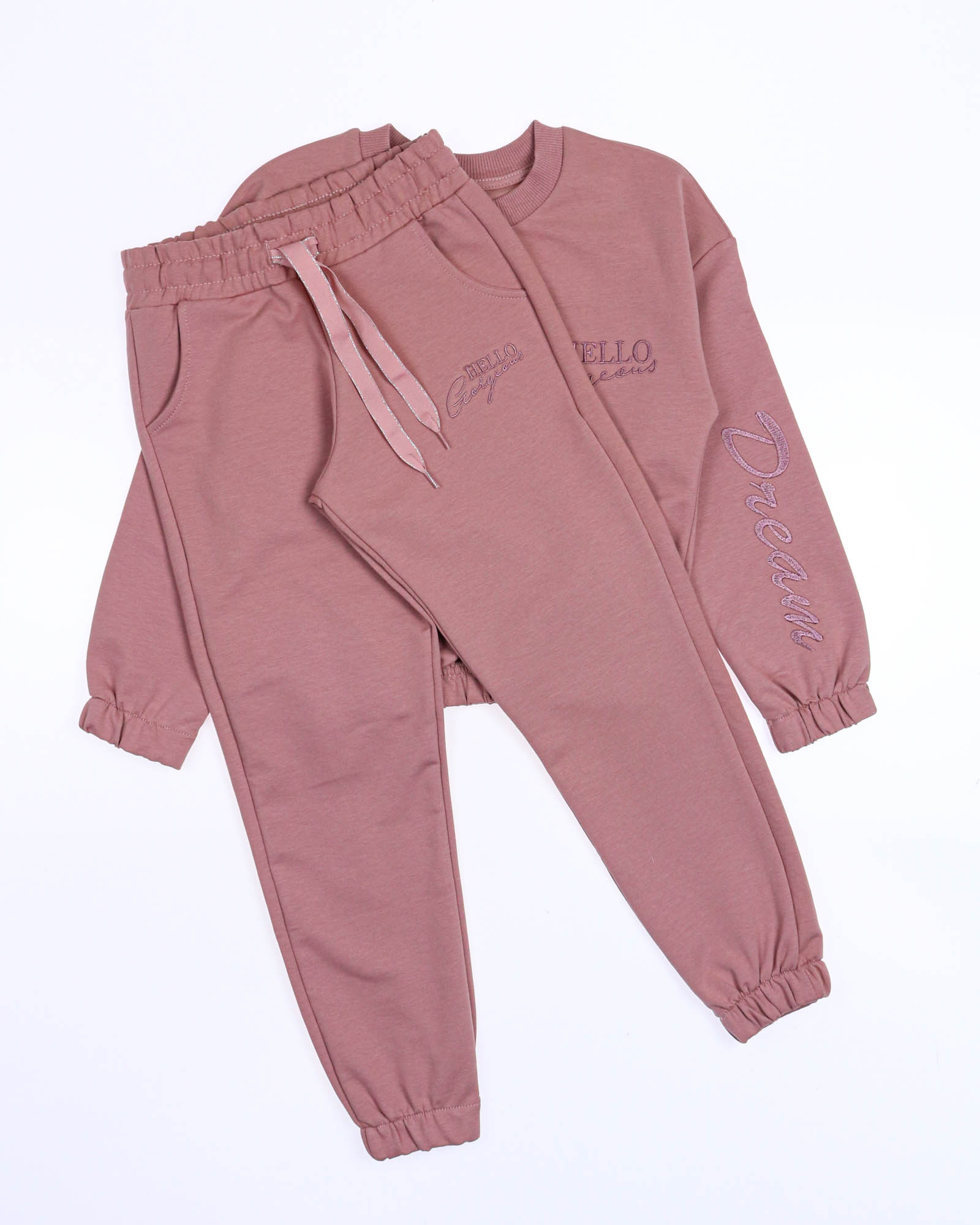 Стильный костюм создан для занятий спортом и прогулок.Свитшот со спущенной линией плеча, брюки с манжетами. Костюм выполнен из трикотожа футер 2х нитка.