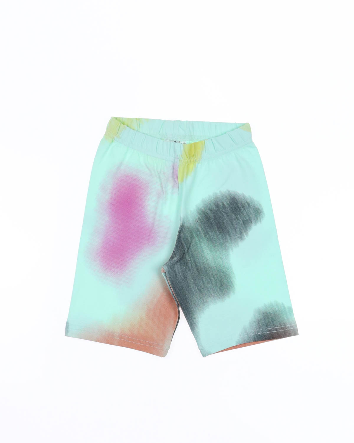 Модель включает в себя футболку свободного силуэта со спущенным плечом и велосипедки.
