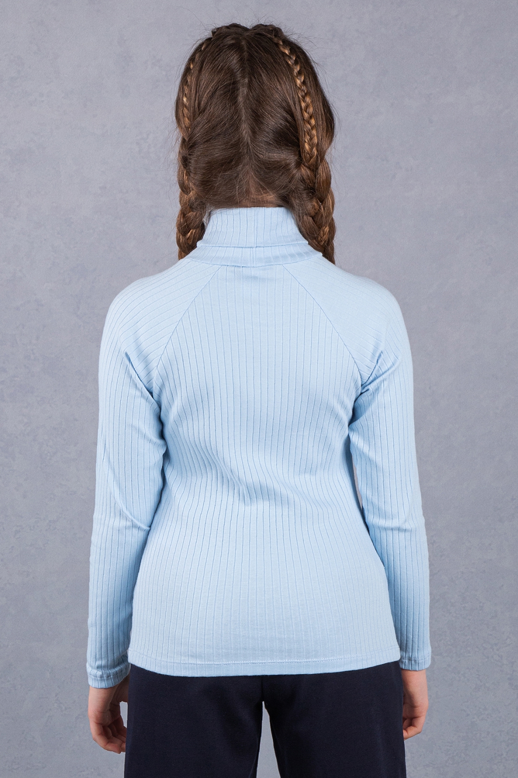 Школьная водолазка из мягкого трикотажа "лапша" для девочек. Модель очень приятная на ощупь и комфортная в носке. Приталенный фасон, воротник-стойка и длинные рукава. Изделие украшено декоративными пуговицами.