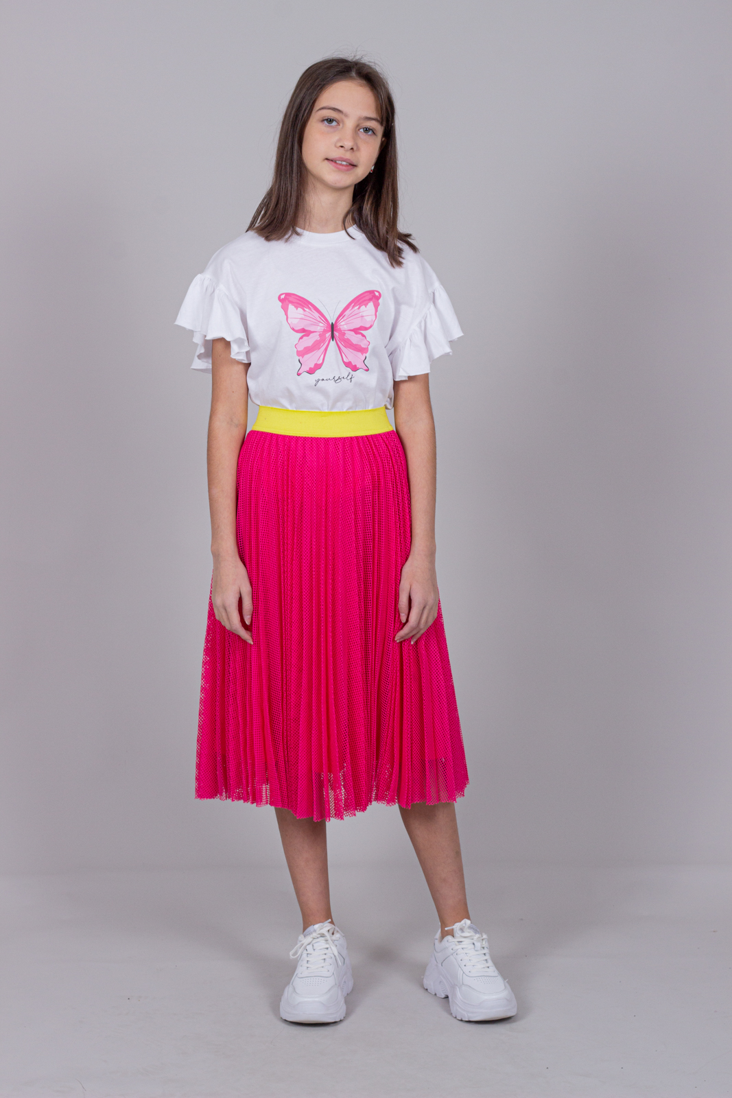 Летняя плиссе юбка DMB для девочки оптом. Юбка выполнена из трикотажной сетки на подкладе, пояс на широкой резинке.