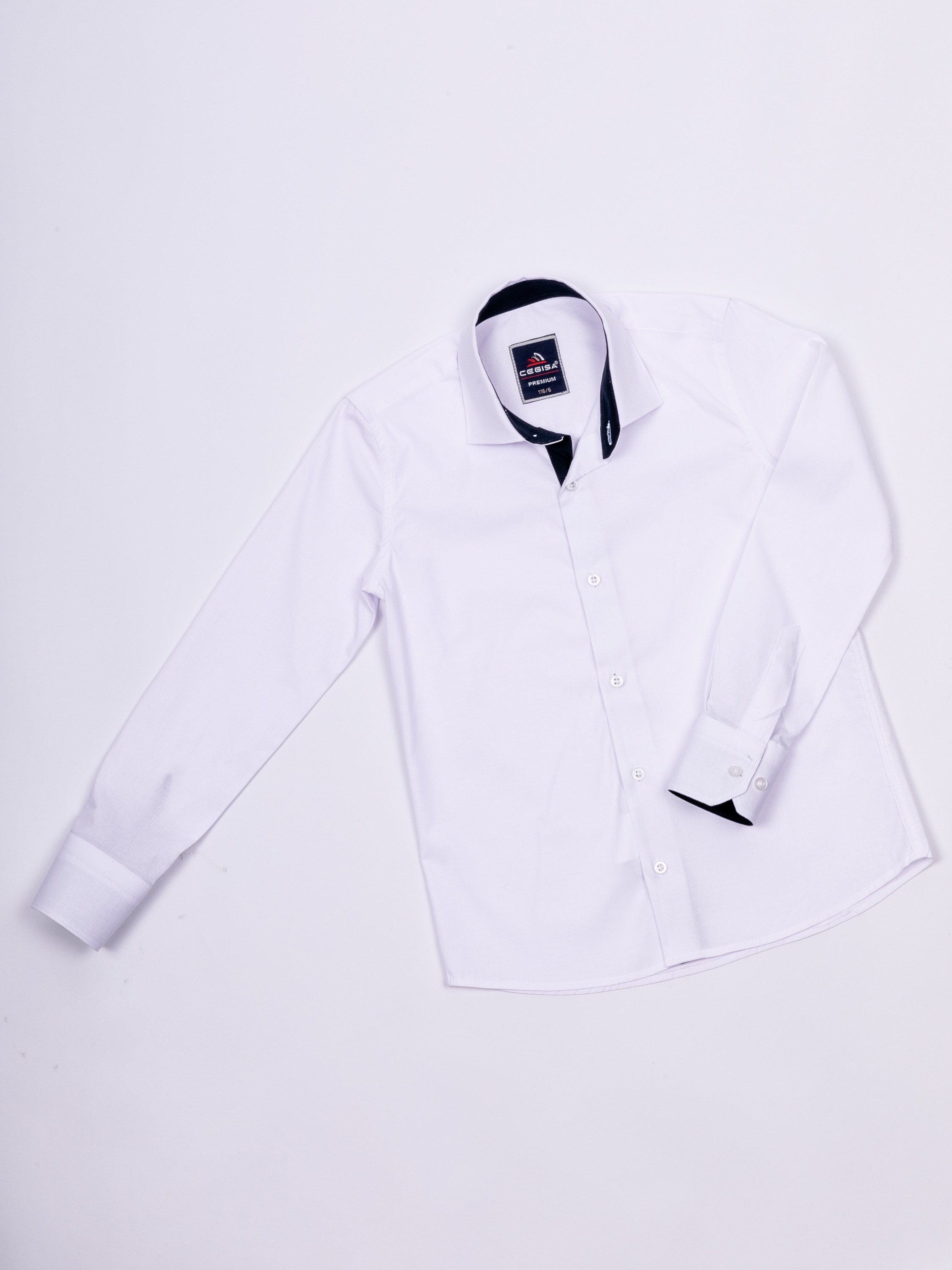 Рубашка CEGISA для мальчика оптом, прямого кроя с длинными рукавами и классическим отложным воротничком. Модель застегивается на пуговицы.