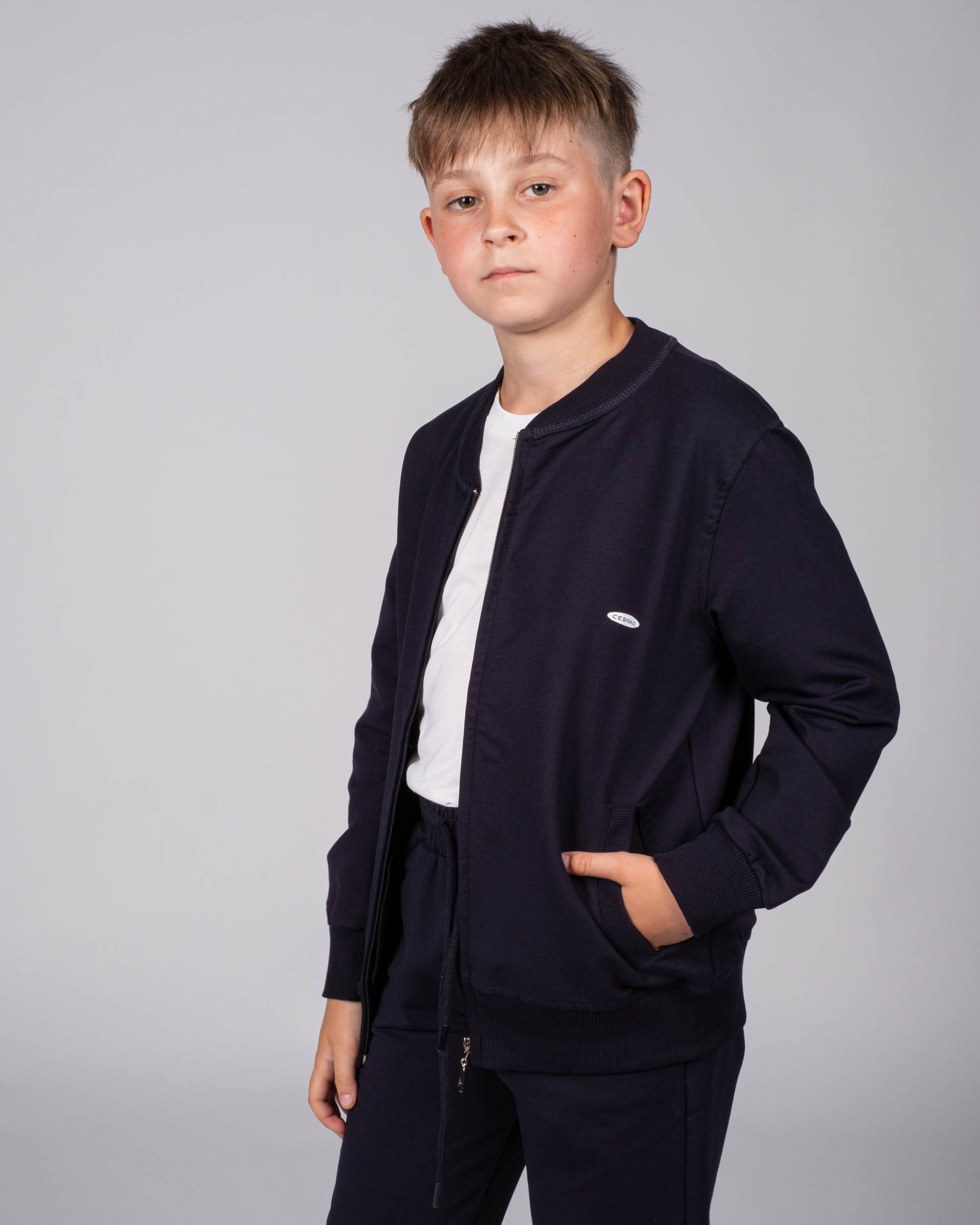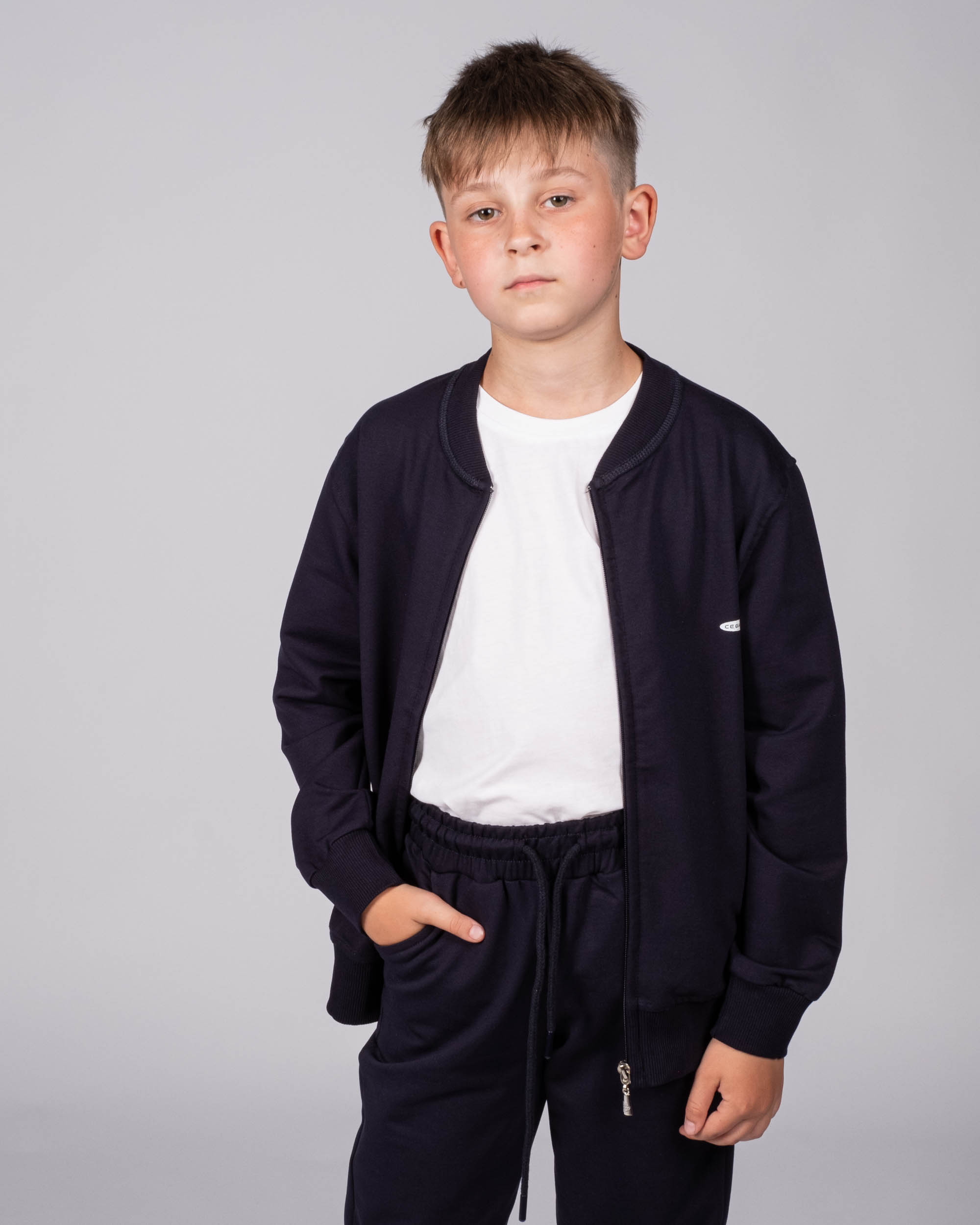 Детский  однотонный спортивный костюм Cegisa оптом. Костюм выполнен из эластичного трикотажа футер (петля), олимпийка застегивается на молнию, на груди фирменная эмблема.