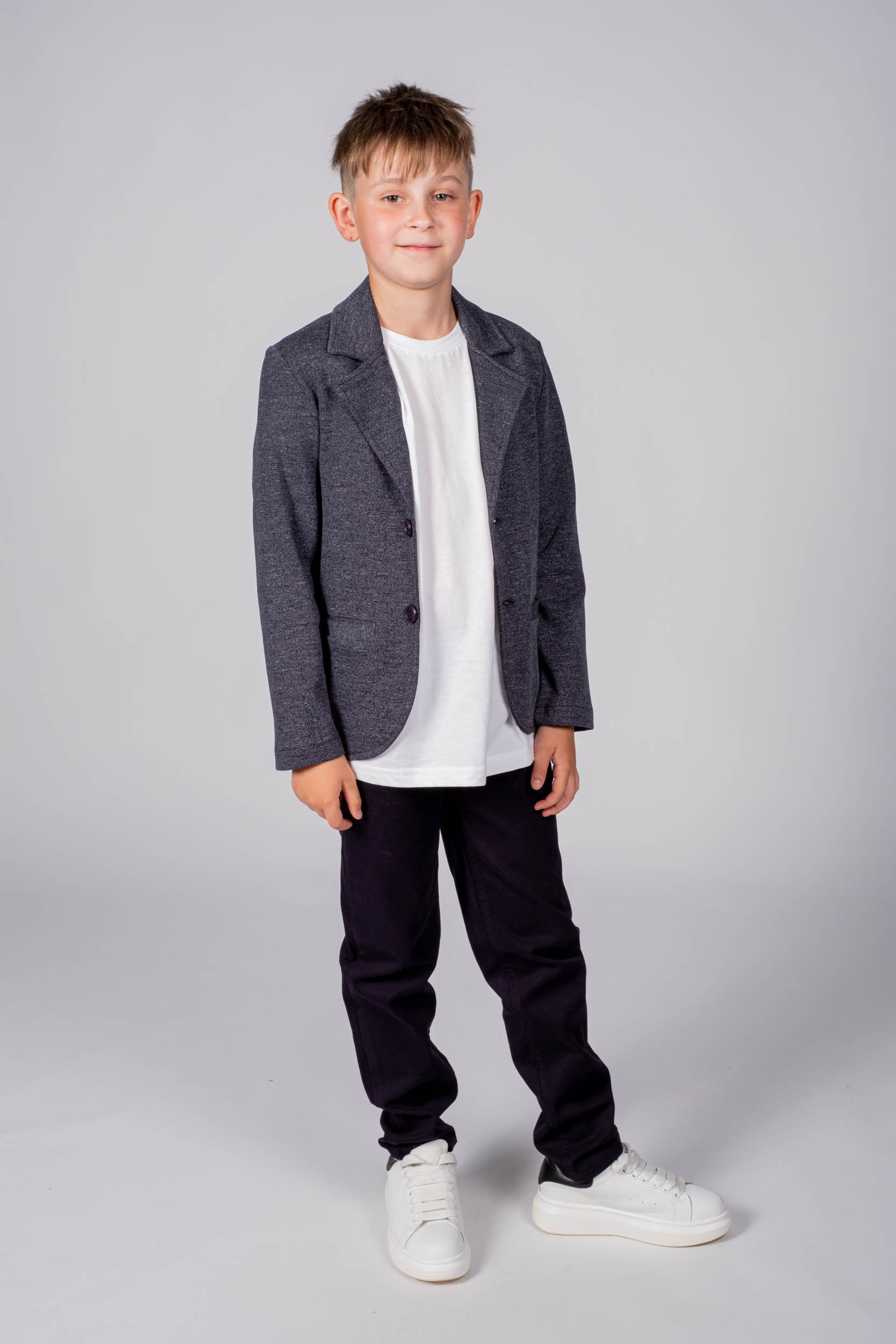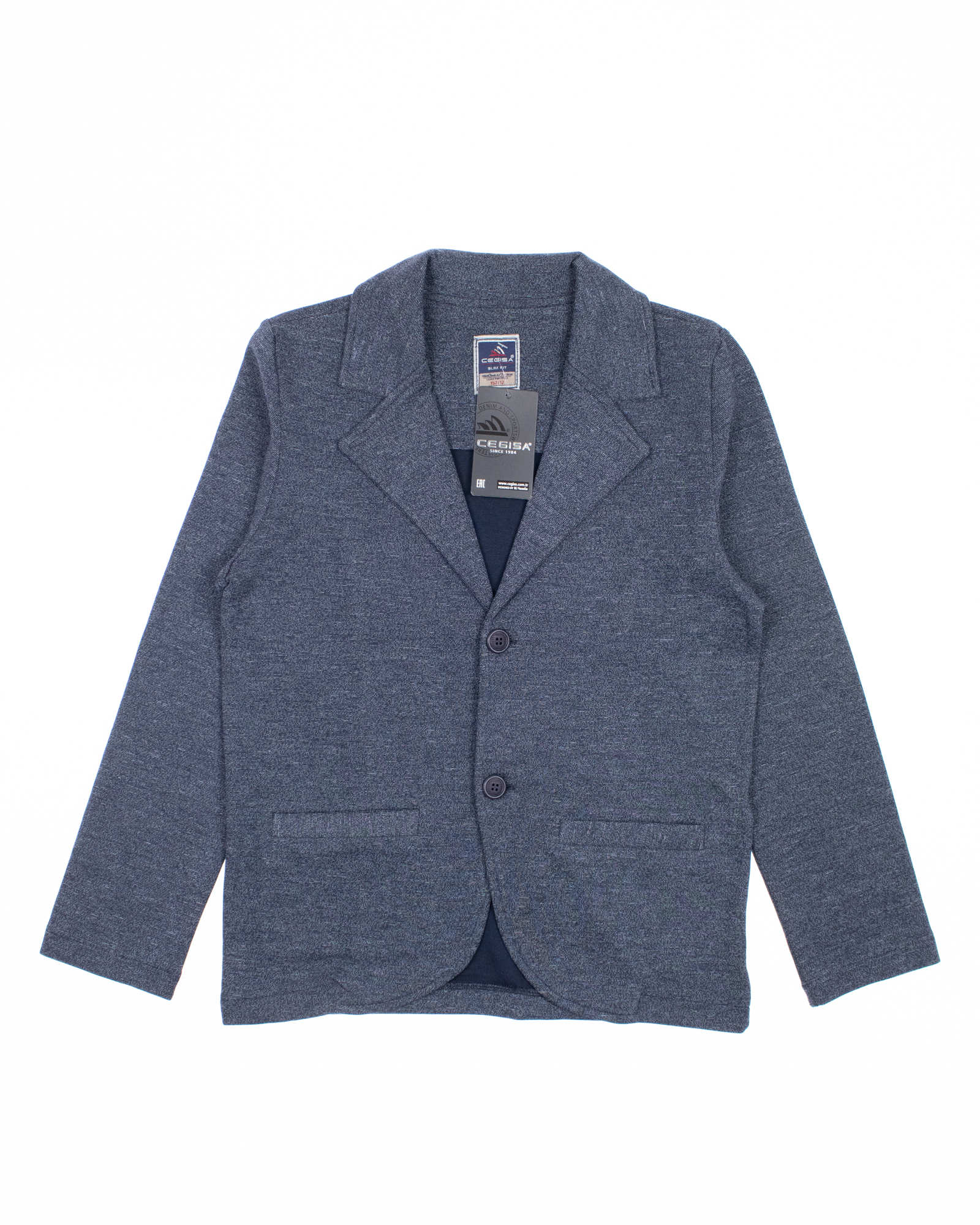 Трикотажный пиджак Cegisa для мальчика оптом. Выполнен из хлопковой ткани. Отложной воротник , вместительные карманы и разъемная застежка - пуговицы. Хорошо сохраняет цвет и форму при длительной носке и после многократных стирок. Прекрасно будет смотреться как школьная форма.
