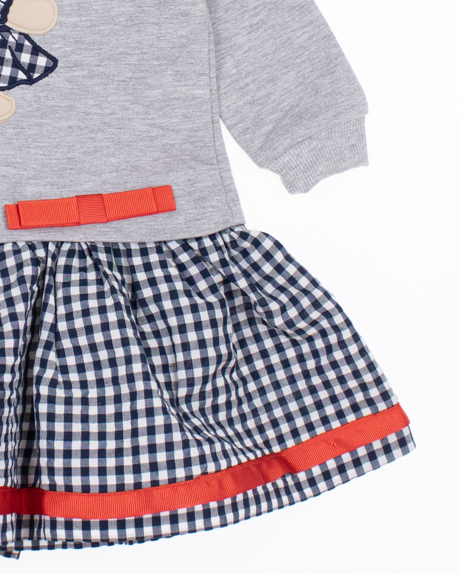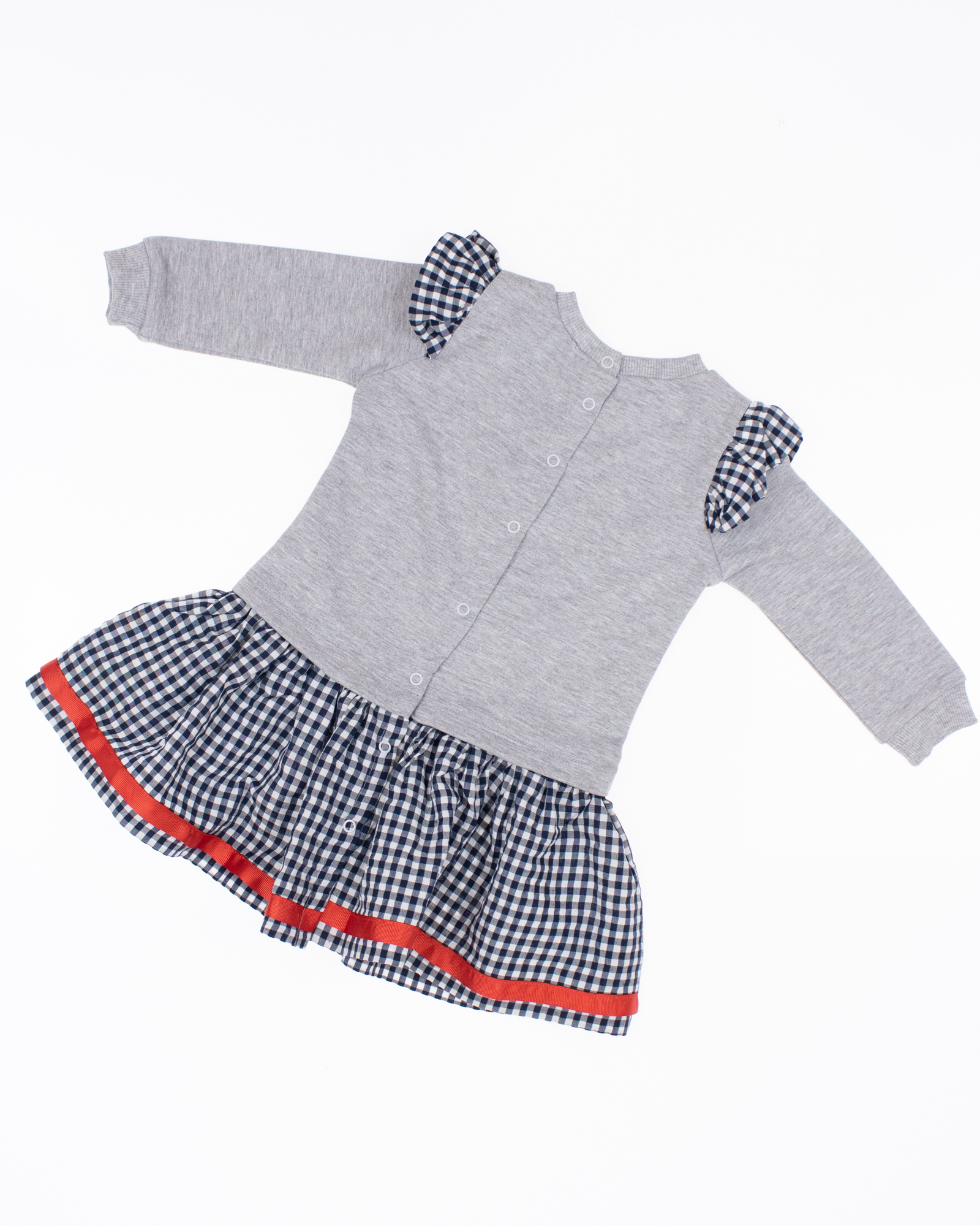 Комбинированное платье NEON для девочки оптом. Платье с длинными рукавами , которые украшены нежными крылышками, создающими впечатление легкости и изящества. Модель выполнена из трикотажа футер (петля), а юбка из хлопковой ткани. На спинке расположена застежка-кнопки, что позволяет легко и быстро одеть маленькую модницу.