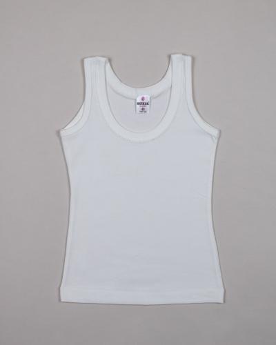 Белая бельевая майка Baykar для девочек оптом. Однотонная майка без рисунка, классическая модель для ежедневной носки. Майка для девочки идеально под блузки белого цвета. Майка на тонких и широких бретелях может использоваться как для сна , в школу , под одежду . Ткань очень практична, комфортна и гипоалергенна. Белье для девочек не мнется, хорошо тянется, сохраняя первоначальный вид после многочисленных стирок.
