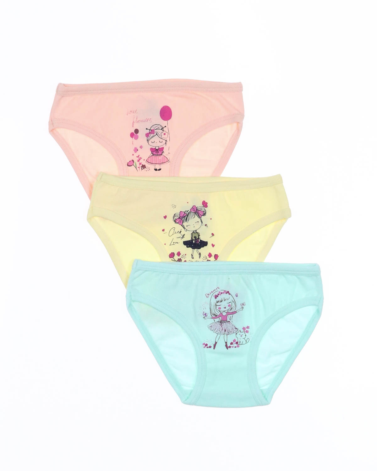 Tрусики для девочки в нежной цветовой гамме. Декоративная отделка, резинки не впиваются в нежную кожу.Эластичное полотно прилегает к бедрам, натуральный хлопок обладает дышащими свойствами.Трусики представлены в трех пастельных оттенках.