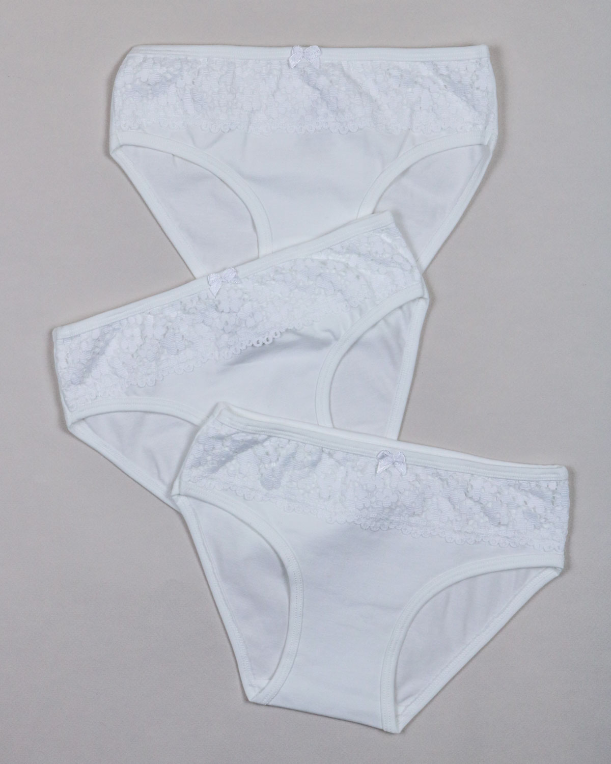 Трусы детские для девочек хлопковые, украшены узорчатым эластичным кружевом.Классическая модель с удобной посадкой, мягкие на ощупь, комфортные и безупречные в носке. Мягкая резинка не давит и не натирает кожу. Дышащая, хлопковая ткань гарантирует комфорт в течение дня.