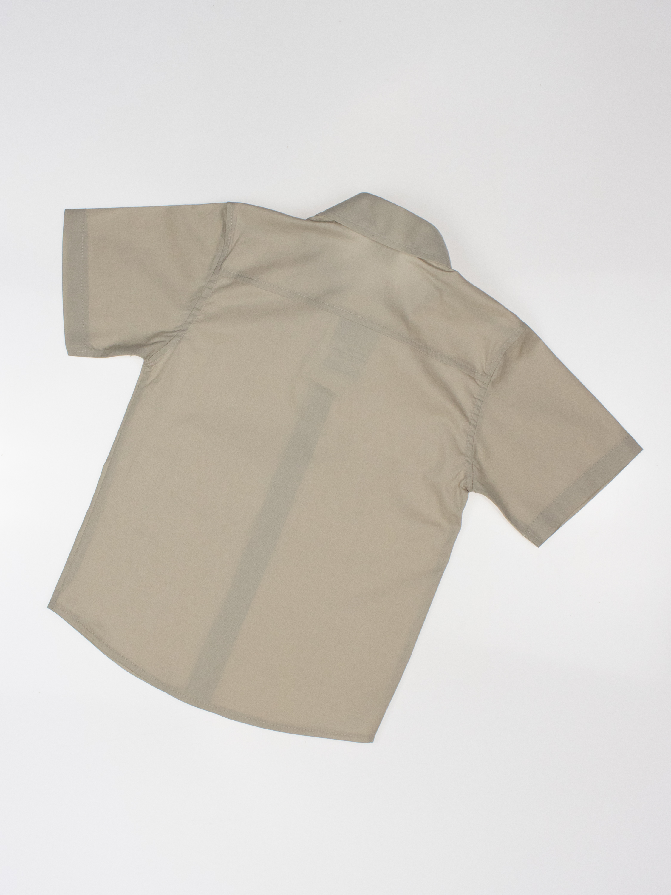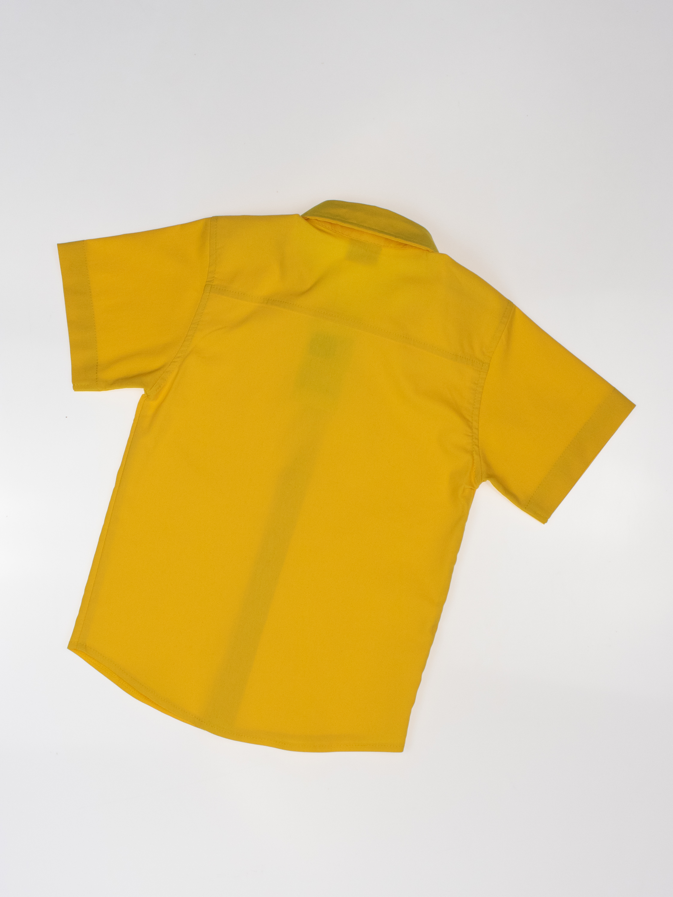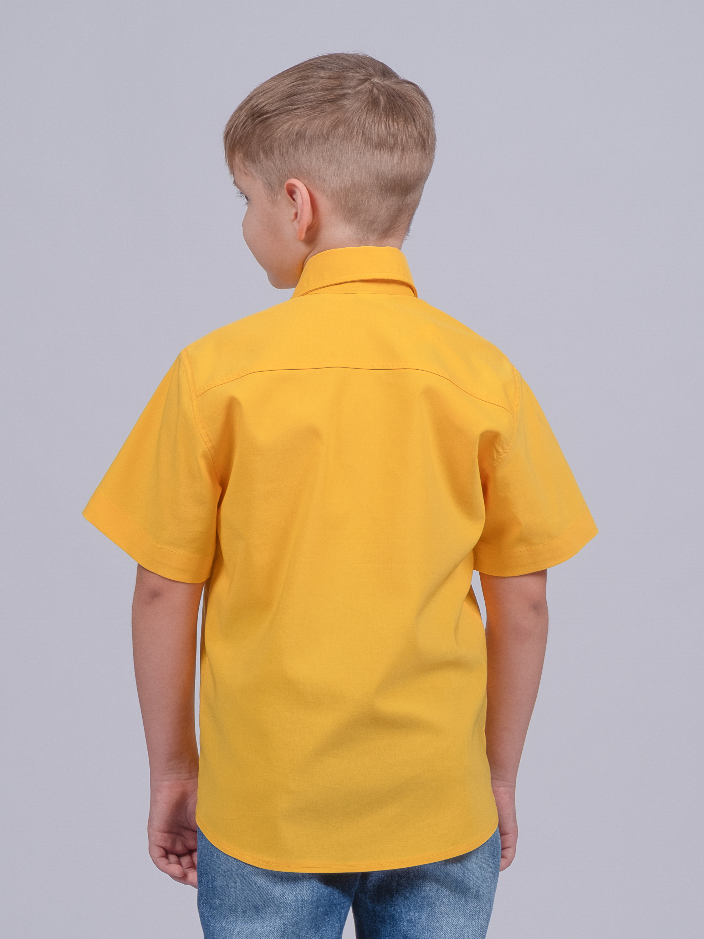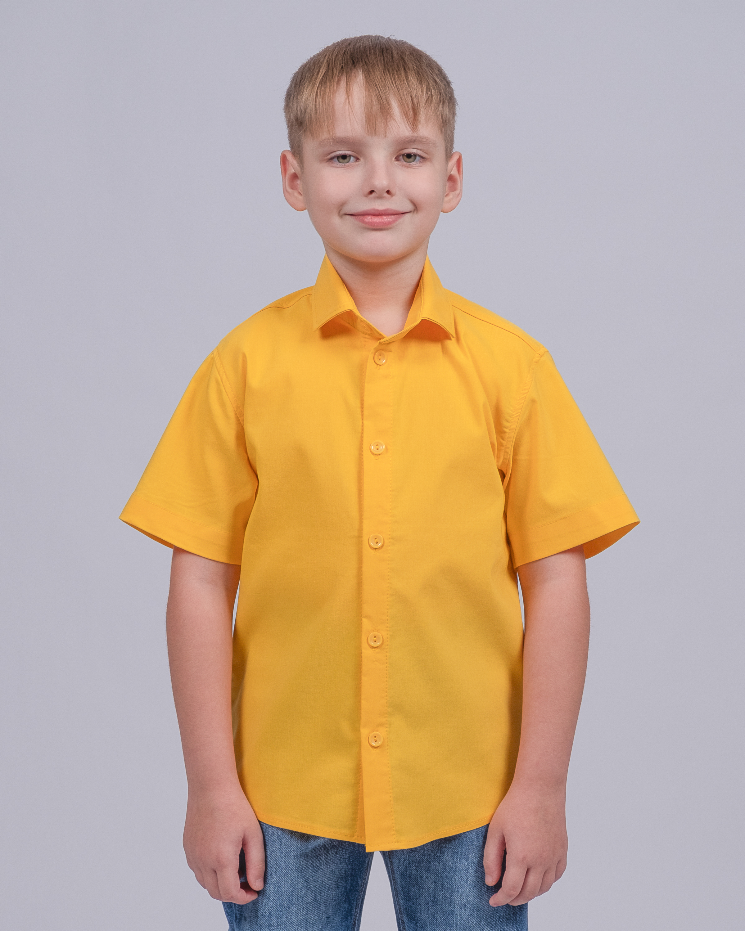 Детская однотонная рубашка с коротким рукавом для мальчика оптом. Рубашка изготавлена из смесового материала высокого качества. Модель застегивается на пуговицы.