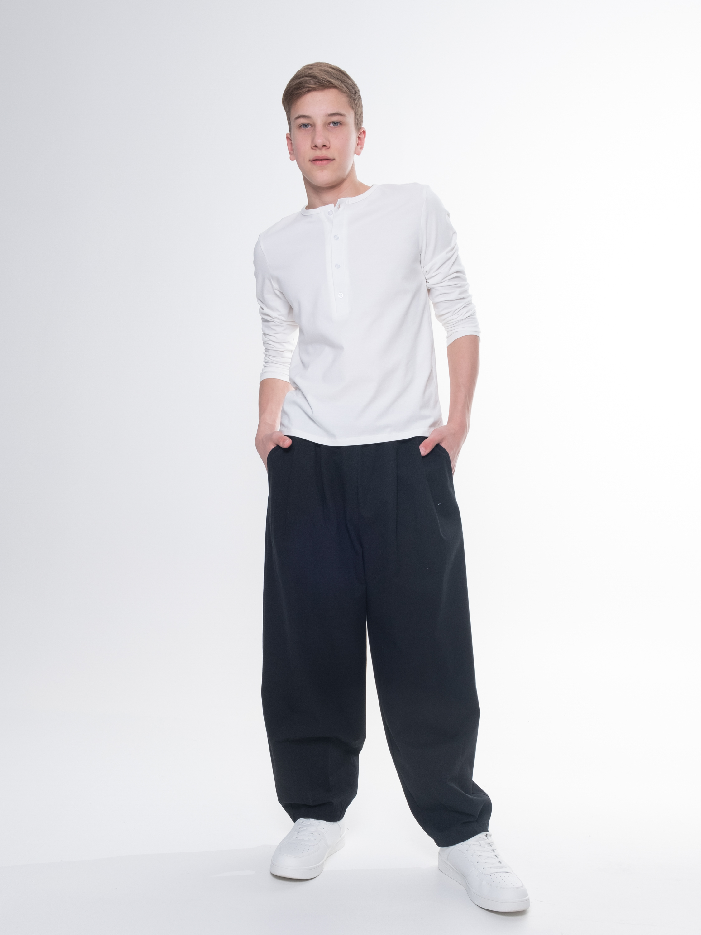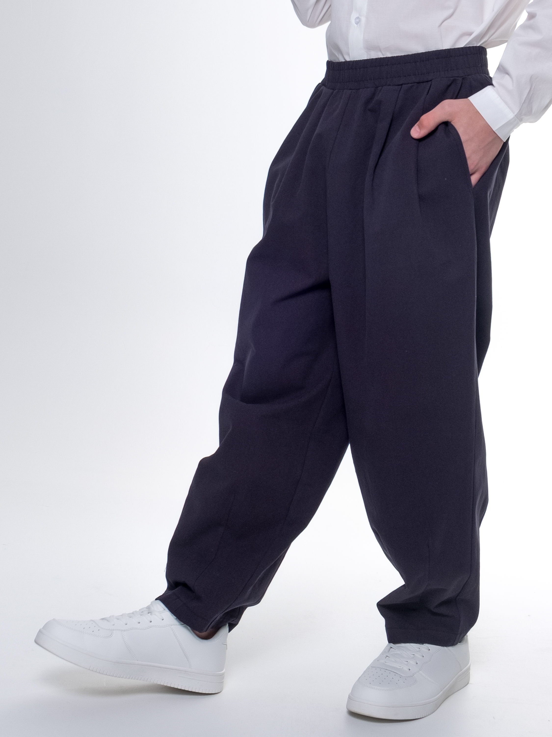 Умеренно свободные сверху, слегка сужены книзу, такая форма позволяет свободно двигаться во время активных игр и занятий спортом. Пояс на удобной резинке обеспечит дополнительную мягкость посадки и подойдет детям разных фигур.
